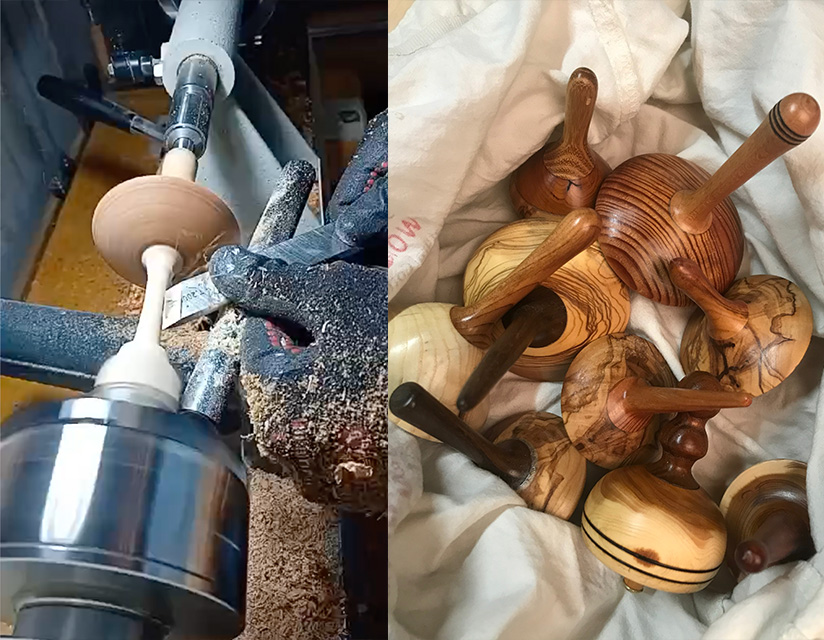 Scegliamo il legno, riconosciamo la funzione degli utensili e decidiamo una forma. Costruiamo insieme una trottola e altri piccoli oggetti al tornio. Choose the wood type, recognize the function of the tools and decide on a shape. Build a spinning top and other small objects on the lathe.