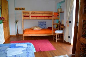 Il s’agit d’une chambre avec salle de bains et quatre lits: un grand lit et un lit superposé, solution idéale pour la famille ou pour des amis. Un balcon en bois est à votre disposition pour contempler le merveilleux panorama du Monviso, Elva, la vallée et le petit village de Marmora.
